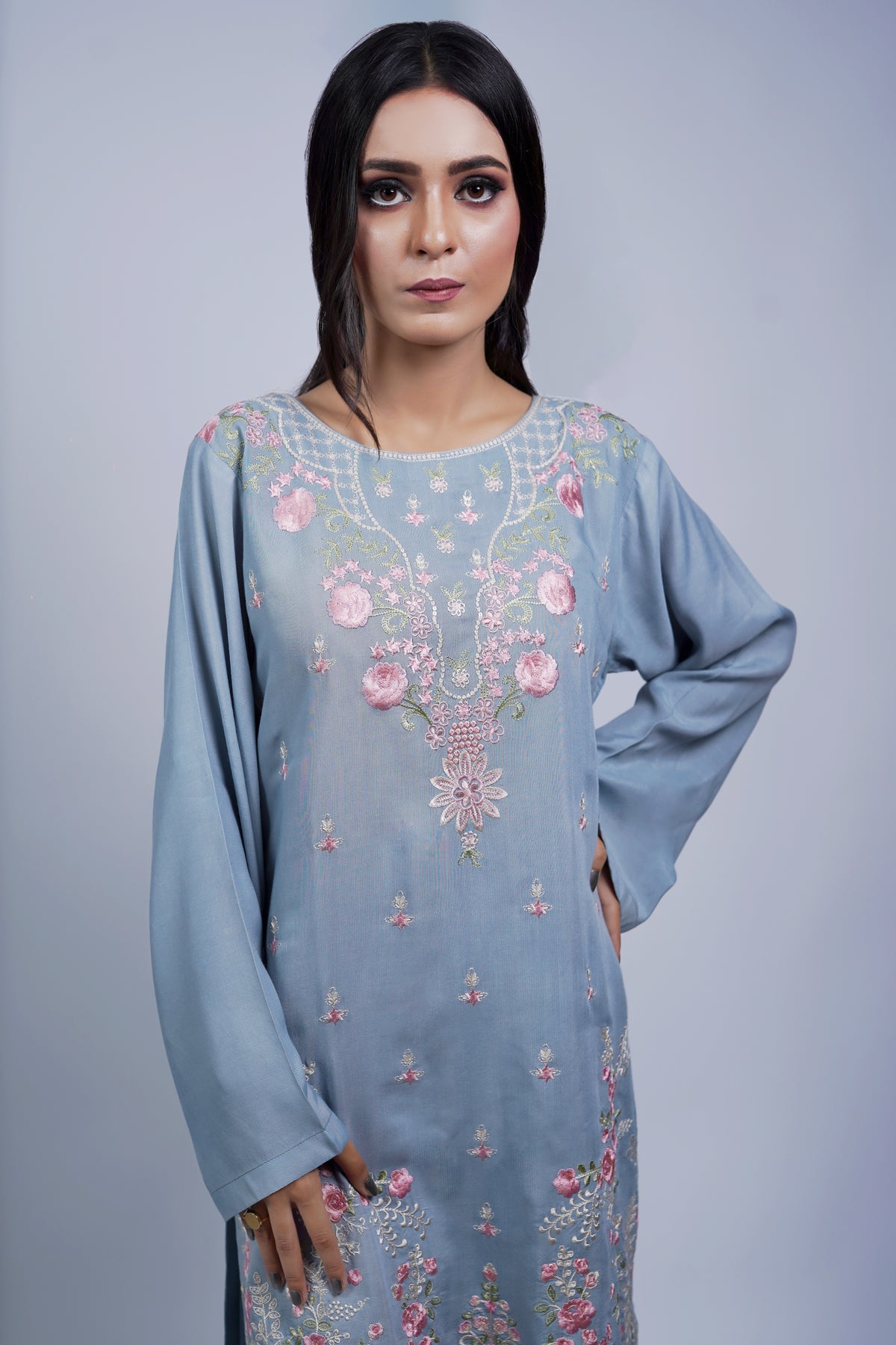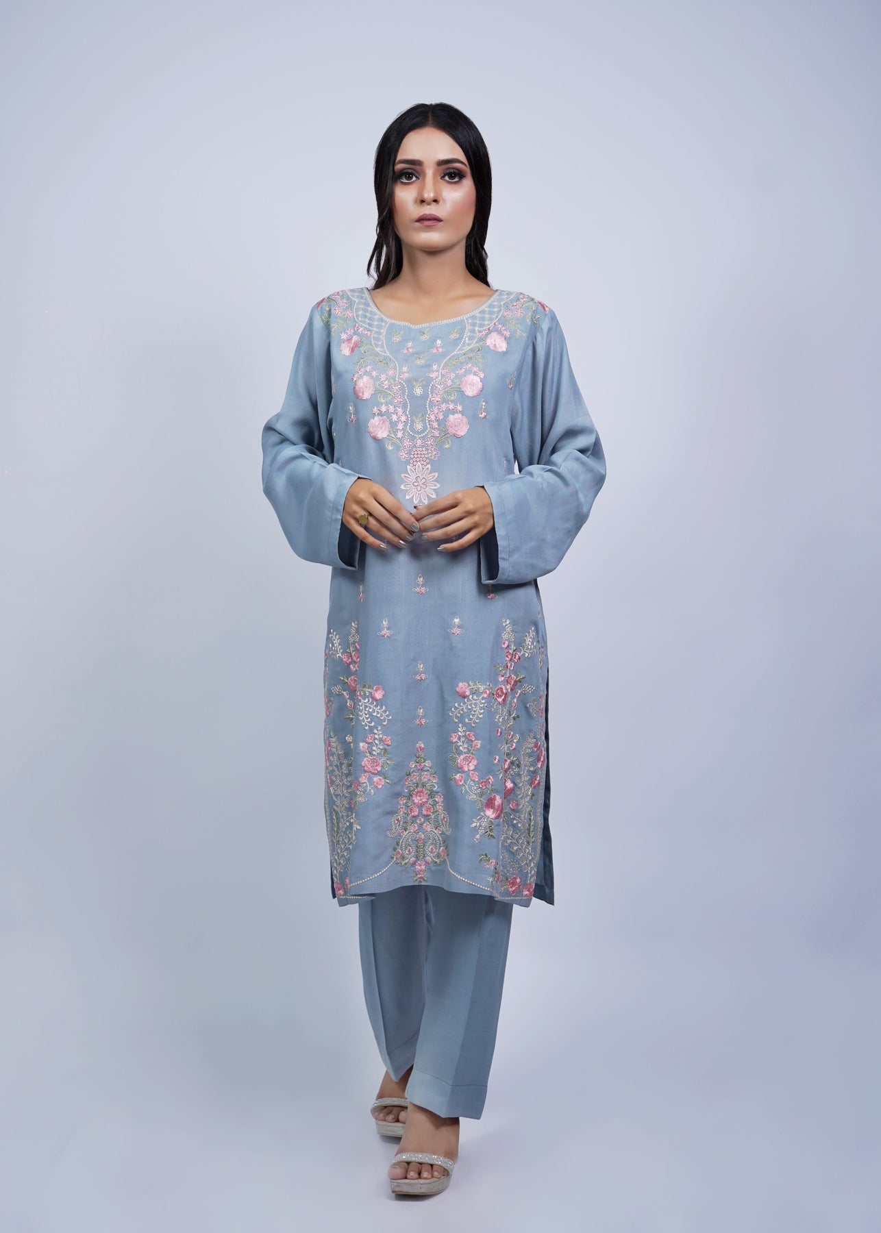 Elevate your festive charm with this stunning maroon long shirt, exquisitely crafted on 3D net fabric. Adorned with intricate embroidery and delicate 3D embellishments, this 2-piece outfit perfectly blends elegance and tradition. Paired with a matching trouser, it’s an ideal choice for weddings, formal dinners, and festive evenings. 💫