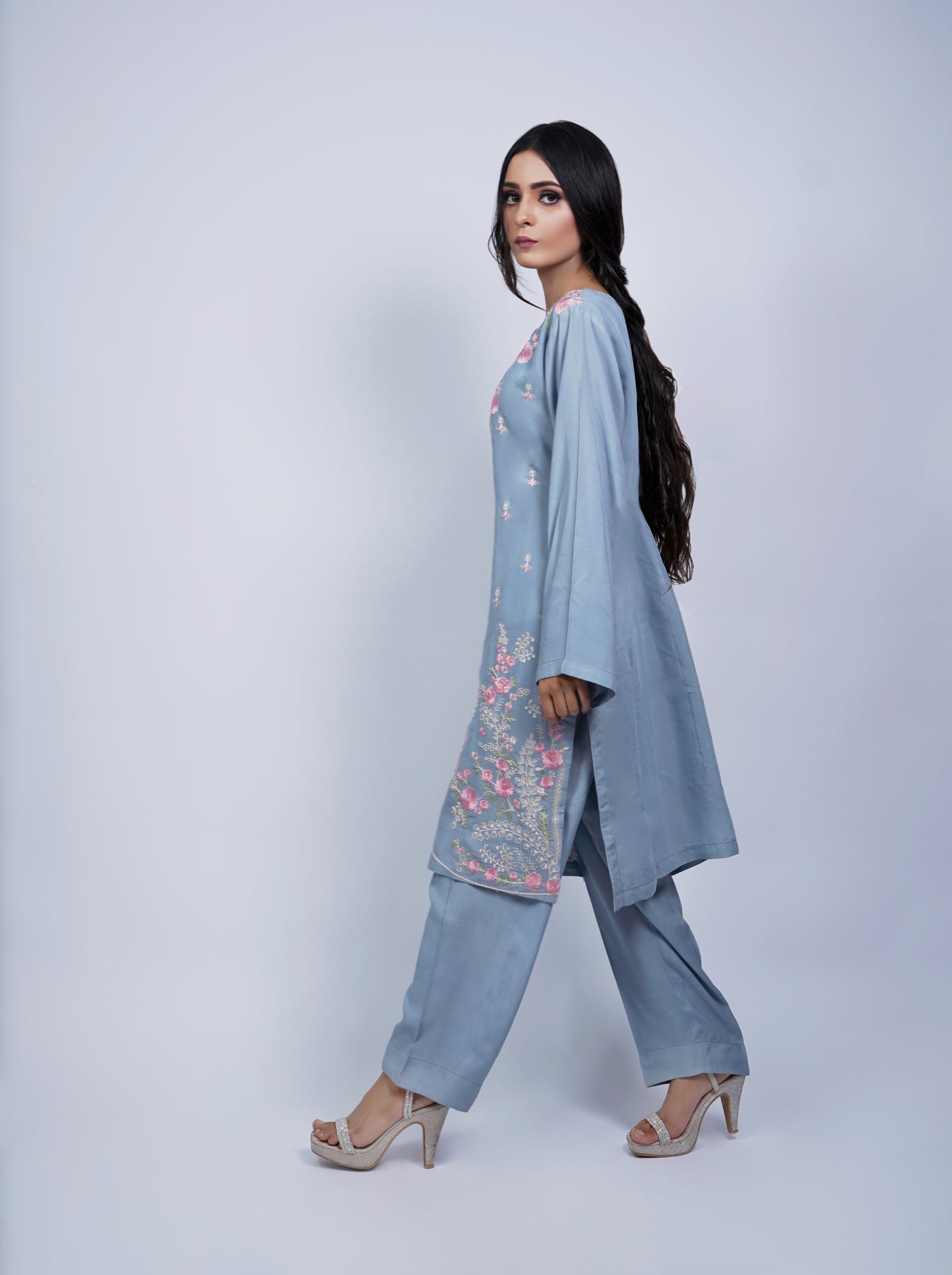 Details: Shirt: Sheesha Silk Trouser: Raw Silk Dupatta: Crinkle Chiffon Color: White Design: Elegant embroidered bird design with handcrafted detailing for a sophisticated look Type: Ready-to-wear 3-Piece Suit