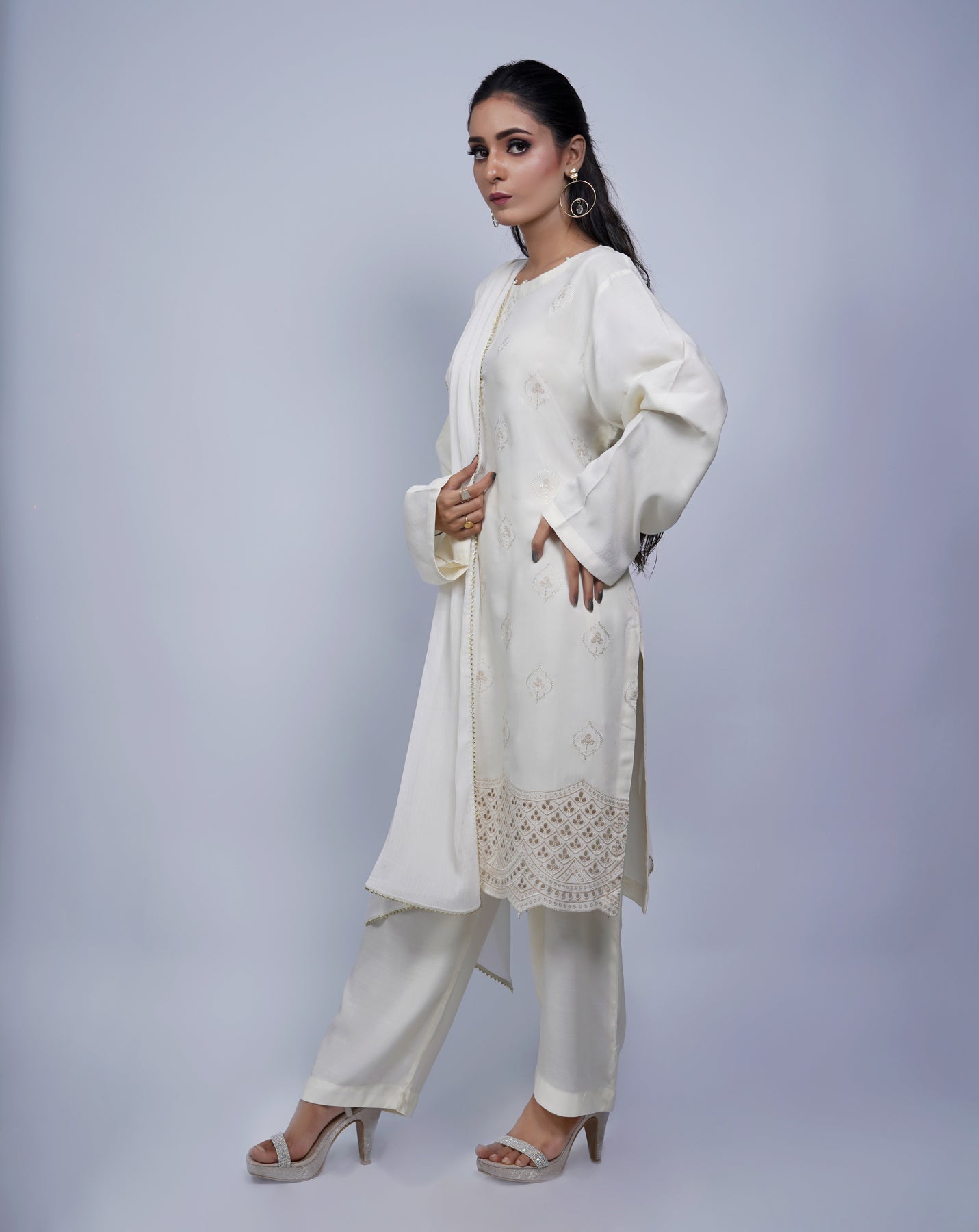 A classic black chikankari outfit designed for everyday comfort. Lightweight cotton with delicate detailing makes it an easy choice for daily wear and work routines.